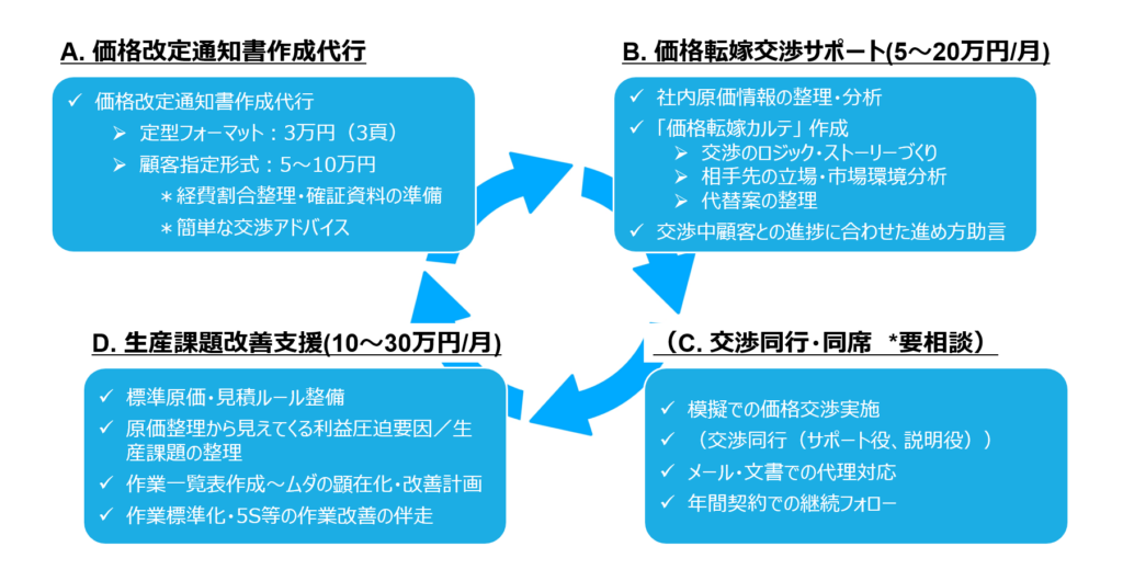 また、当社は価格転嫁を“交渉”だけではなく“経営の整理”として支援します。